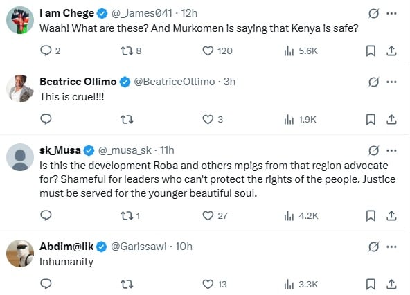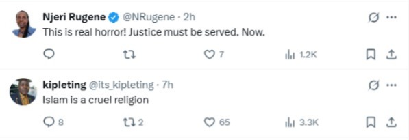 "This is real horror! Justice must be served. Now," an X user, Njeri Rugene, said.