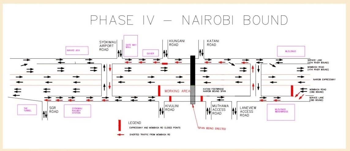 KeNHA explained that the disruption will be occasioned by the planned installation of footbridge beams.