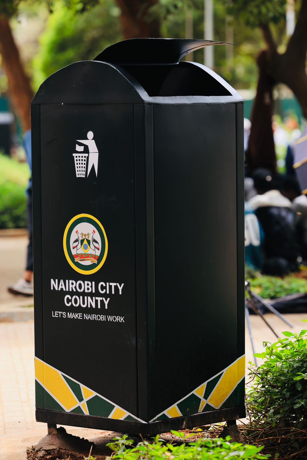 The new dustbins have been painted black and branded with the county government colours, with the wording 'Let's make Nairobi work'.