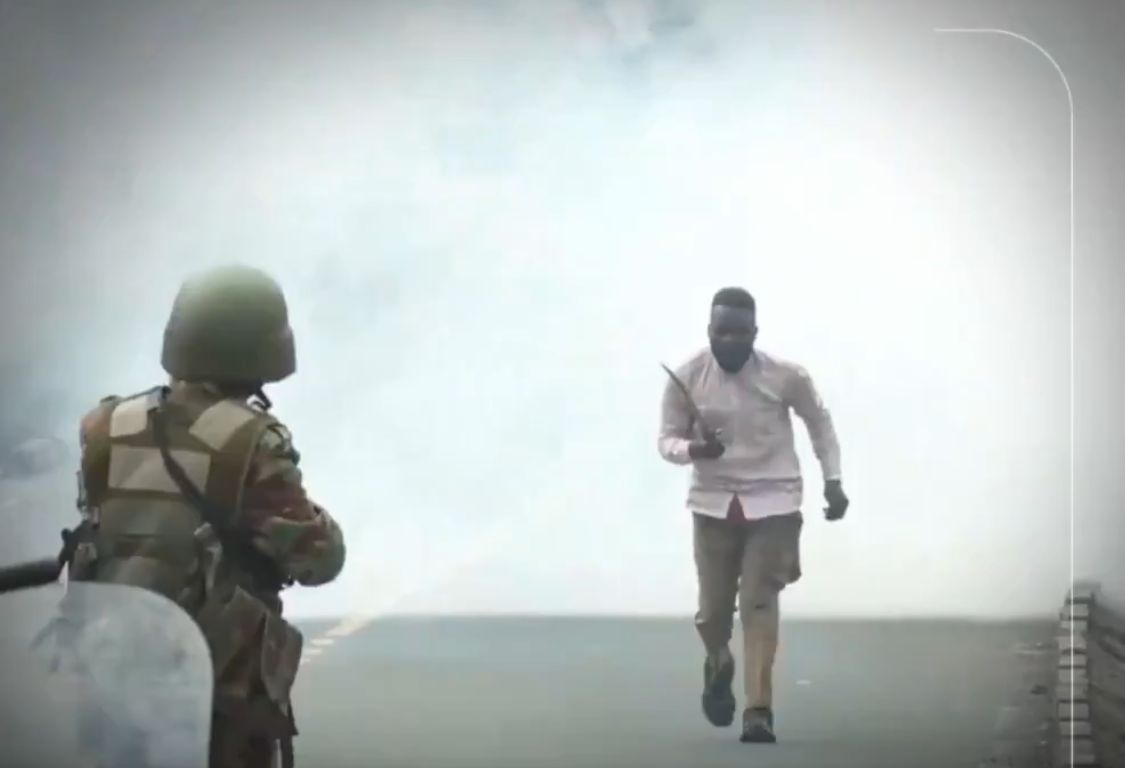 The widely shared video shows a man confronting police officers while holding a panga, as the officers attempted to disperse crowds and restore calm.