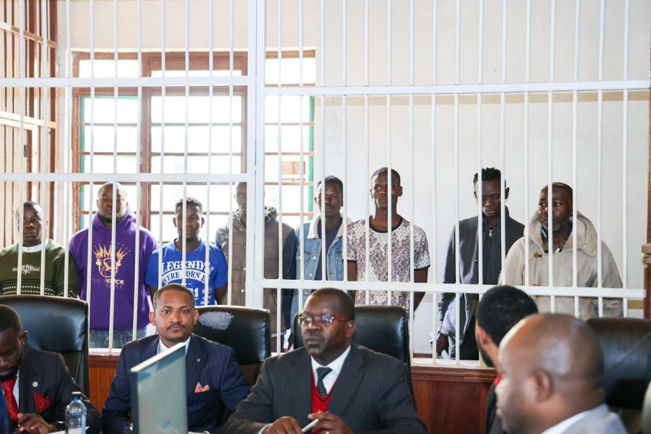 Eight individuals accused of orchestrating the arson attack on Mawego Police Station were on Tuesday, July 15, arraigned at the Kahawa Law Courts, facing terrorism and criminal charges.