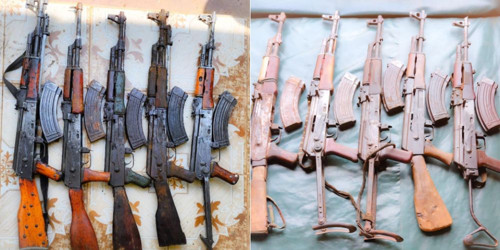 The cache included three AK-47 rifles with empty magazines, one AK-47 rifle with a magazine containing eight rounds of ammunition, and another AK-47 rifle with a magazine containing five rounds of ammunition.
